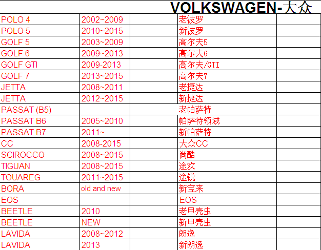 脚垫车型表出口